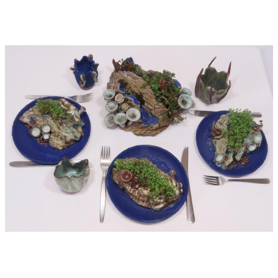 "GIARDINI MINERALI" grès modellato, smalti, piante